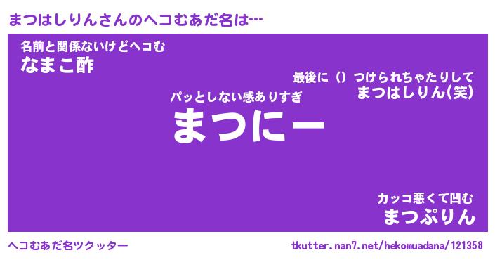 | 胡散臭い通販商品みたいなあだ名 | 『億万長者になれるブレスレット…その名も「まつはしりん」』 |