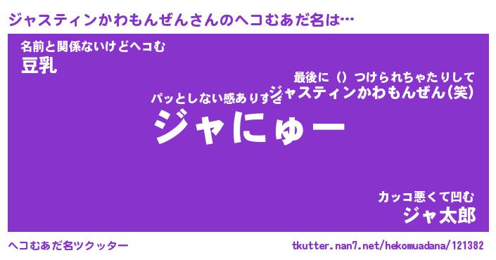 | 恥ずかしいあだ名 | 『プリティージャスティンかわもんぜん』 |