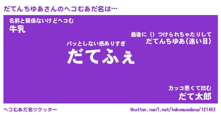 | 男性向けラノベタイトル風あだ名 | 『だてんちゆあの憂鬱』 |