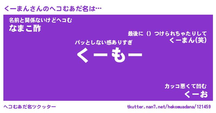 | ポケモン風あだ名 | 『クーチュウ』『クーマダネ』 |