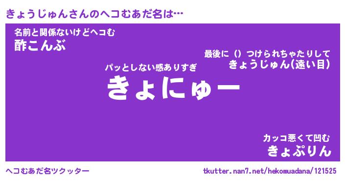 | 男性向けラノベタイトル風あだ名 | 『きょうじゅんの憂鬱』 |
