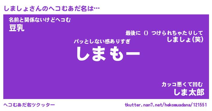 | 2回繰り返すあだ名 | 『しましま』『ししまま』『なあなあ』 |
