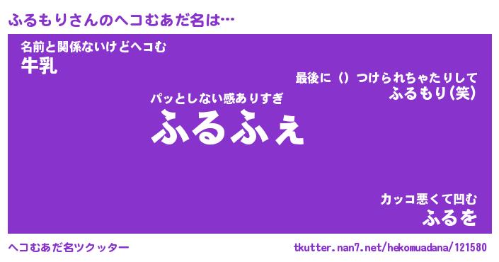 | 意味不明あだ名 | 『ペロリンふるもり』『永久保存ふるもり』 |