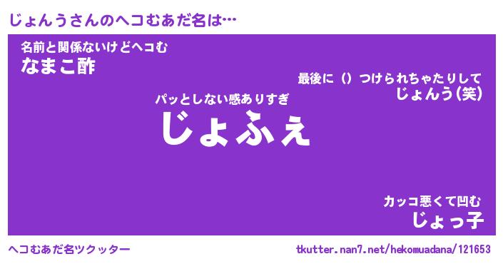 | 意味不明あだ名 | 『ペロリンじょんう』『永久保存じょんう』 |