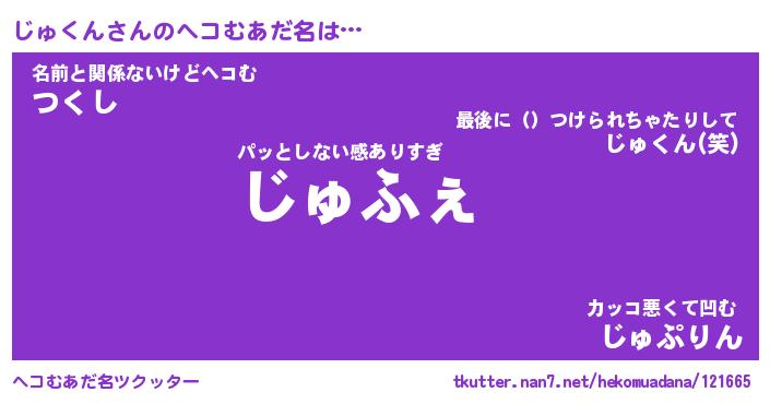 | 意味不明あだ名 | 『ペロリンじゅくん』『永久保存じゅくん』 |