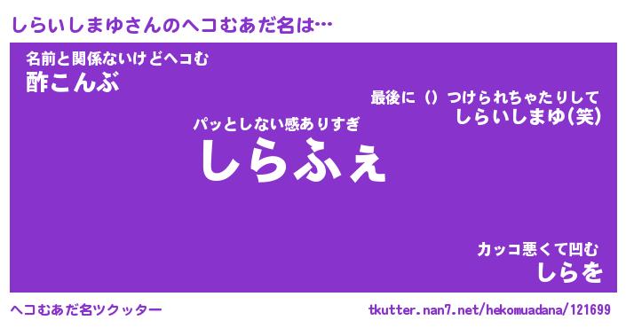 しらいしまゆさんのヘコむあだ名をツクッター!