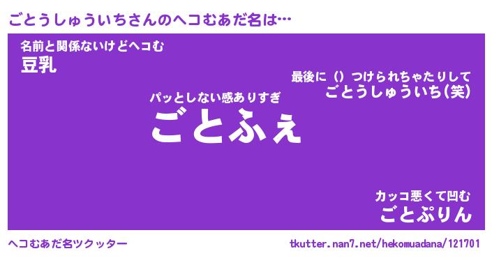 | 女子向けラノベタイトル風あだ名 | 『(仮)ごとうしゅういちのやんごとなき事情』 |