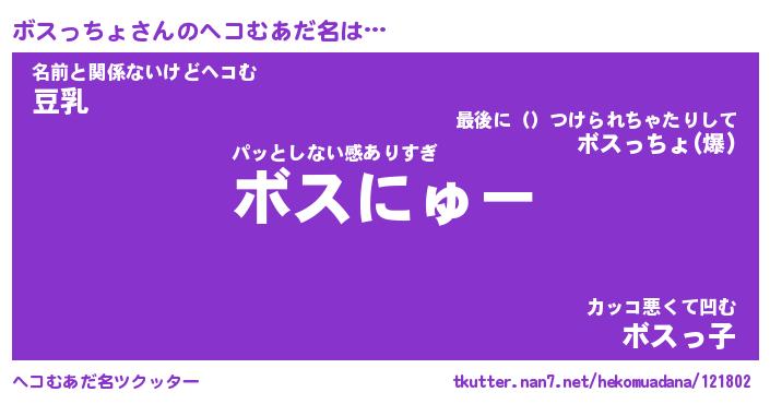 | 胡散臭い通販商品みたいなあだ名 | 『モテモテ間違いなし水晶球…その名も「ボスっちょ」』 |