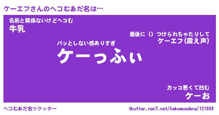 | ファンタジー風あだ名 | 『ケーフェル』『エターナルケーエフー』 |