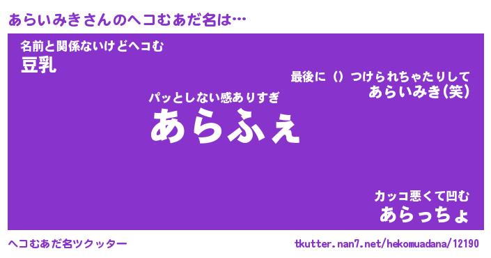 | 意味不明あだ名 | 『ペロリンあらいみき』 |