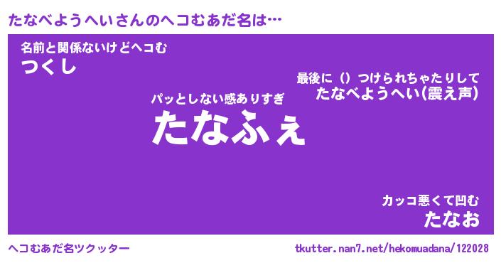 | 男性向けラノベタイトル風あだ名 | 『たなべようへいの憂鬱』 |