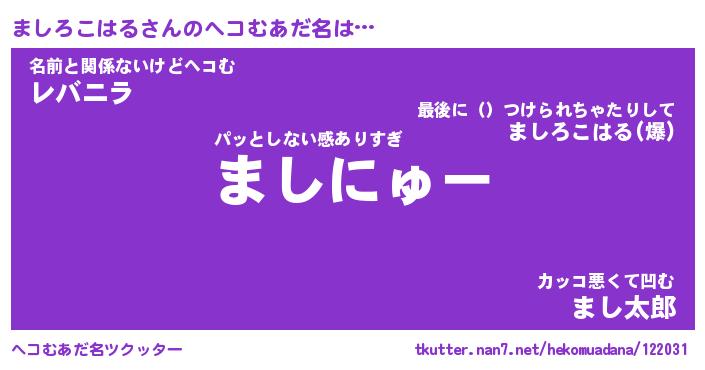 | 欧米人風あだ名 | 『マイケルましろこはる』 |