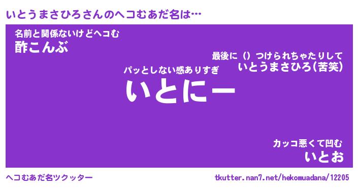 | 恥ずかしいあだ名 | 『プリティーいとうまさひろ』『いとちん』 |