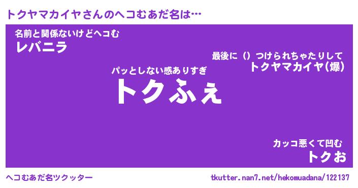 | 男性向けラノベタイトル風あだ名 | 『トクヤマカイヤアートオンライン』 |
