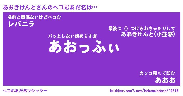 | 意味不明あだ名 | 『ペロリンあおきけんと』 |