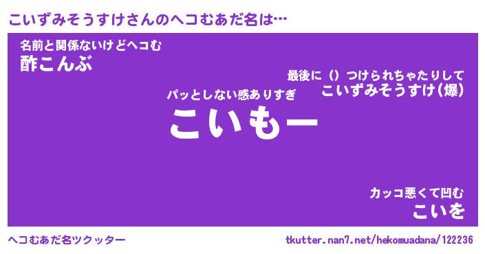 | 男性向けラノベタイトル風あだ名 | 『こいずみそうすけの憂鬱』 |