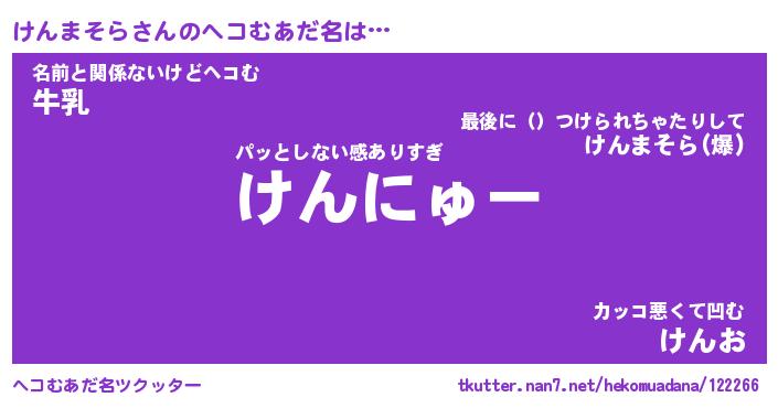 | 2回繰り返すあだ名 | 『けんけん』『けけんん』『ぬらぬら』 |