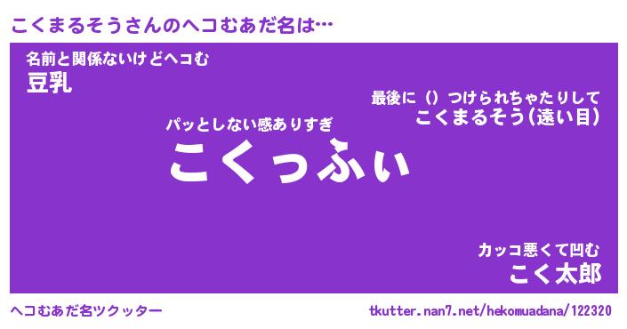 | 2回繰り返すあだ名 | 『こくこく』『ここくく』『ごたごた』 |