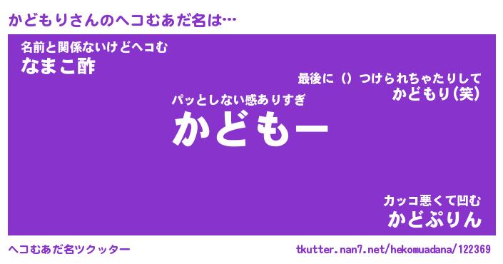 | 意味不明あだ名 | 『ペロリンかどもり』『永久保存かどもり』 |