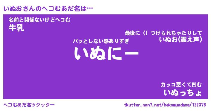 | 意味不明あだ名 | 『ペロリンいぬお』『いぬおフォーエバー』 |