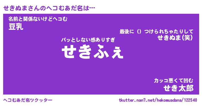 | ファンタジー風あだ名 | 『セキフェル』『エターナルセキヌマー』 |