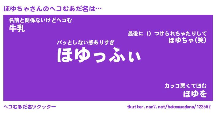 | ファンタジー風あだ名 | 『ホユフェル』『エターナルホユチャー』 |