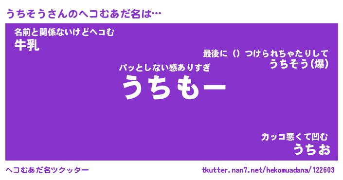 | 意味不明あだ名 | 『ペロリンうちそう』『永久保存うちそう』 |