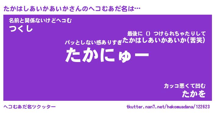 | 2回繰り返すあだ名 | 『たかたか』『たたかか』『ぬぷぬぷ』 |