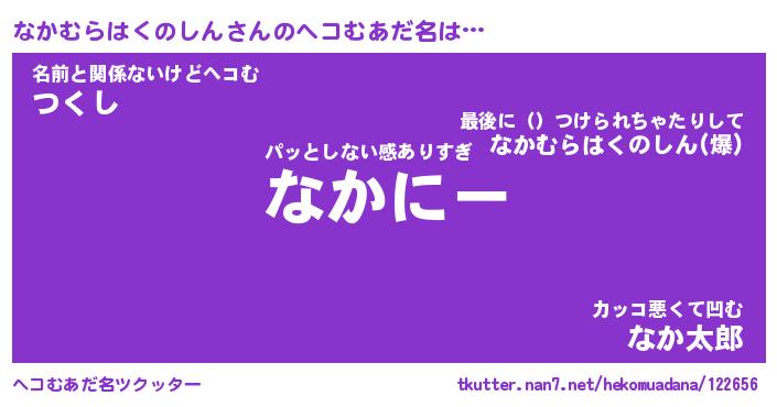 | ヒーロー風カッコイイあだ名 | 『スーパーナカムラハクノシン』 |