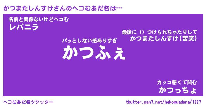 | ツイッター | かつまたしんすけさんのツイッターID『namakemono_star』 |