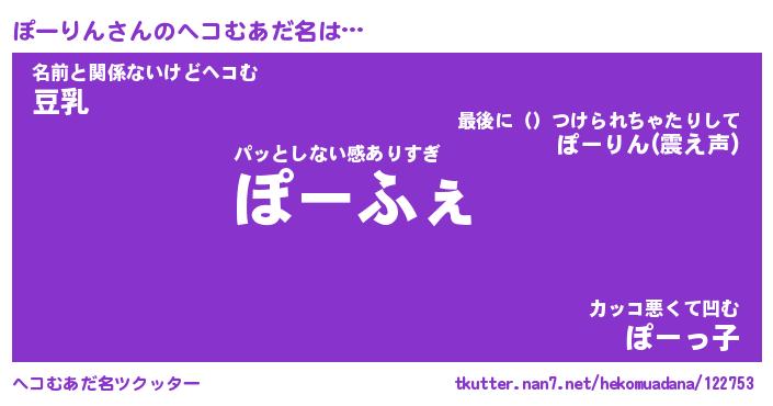 | 意味不明あだ名 | 『ペロリンぽーりん』『永久保存ぽーりん』 |