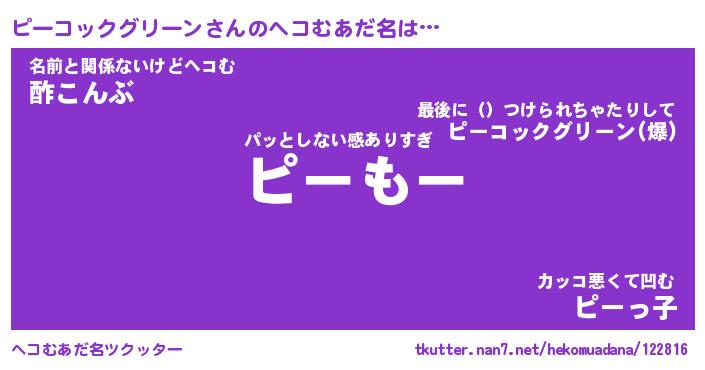 意味不明あだ名 | 『ペロリンピーコックグリーン』 |