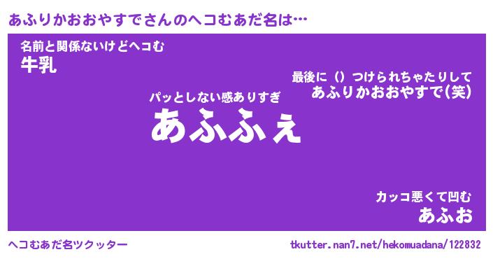 | ポケモン風あだ名 | 『アフチュウ』『アフリダネ』 |