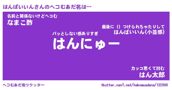 | 2回繰り返すあだ名 | 『はんはん』『ははんん』『ぬらぬら』 |