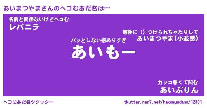| 胡散臭い通販商品みたいなあだ名 | 『モテモテ間違いなし霊験あらたかなお札…その名も「あいまつやま」』 |