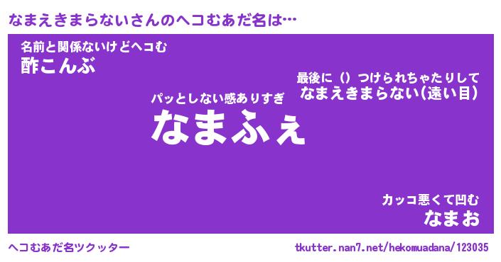 | ポケモン風あだ名 | 『ナマチュウ』『ナマエダネ』 |