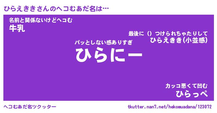 | ヒーロー風カッコイイあだ名 | 『スーパーヒラエキキ』『暗黒騎士ヒラ』 |