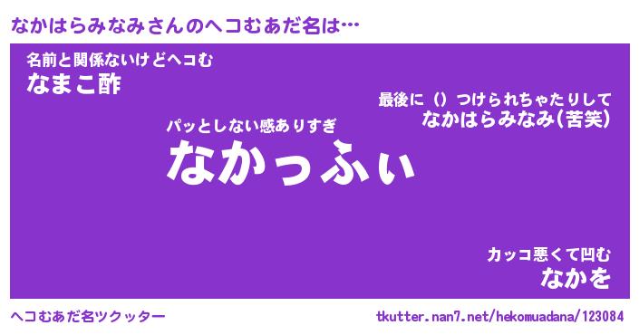 | ポケモン風あだ名 | 『ナカチュウ』『ナカハダネ』 |