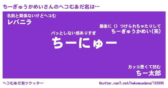 | 意味不明あだ名 | 『ペロリンちーぎゅうかめい』 |
