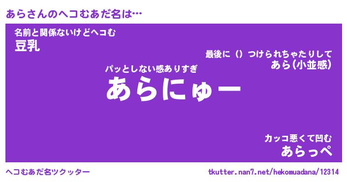 | 意味不明あだ名 | 『ペロリンあら』『あらフォーエバー』 |