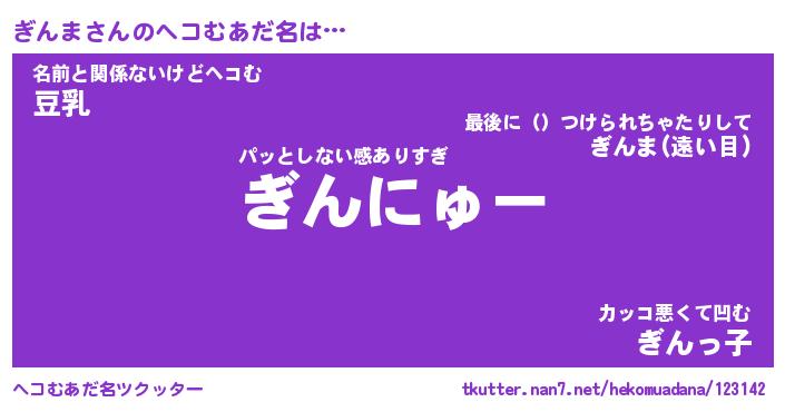 | ポケモン風あだ名 | 『ギンチュウ』『ギンマダネ』 |