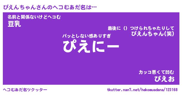 | 可愛いあだ名 | 『ぴんぴん』『ぴえちー』 |