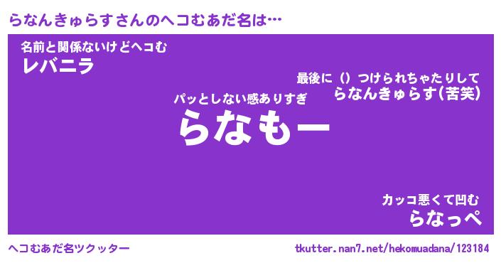 | 2回繰り返すあだ名 | 『らならな』『ららなな』『ぐいぐい』 |
