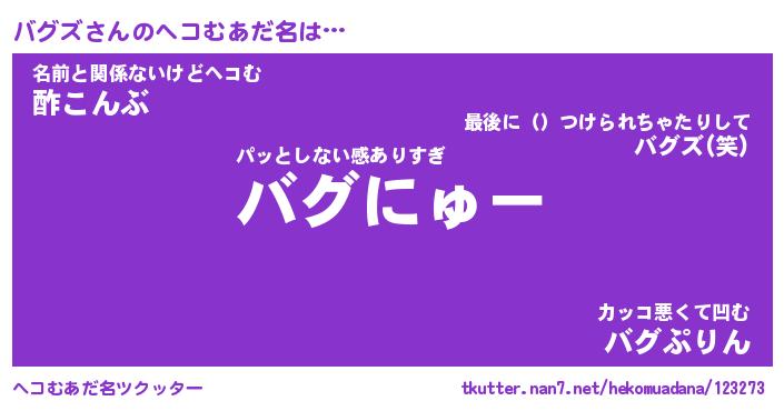 | ファンタジー風あだ名 | 『バグフェル』『エターナルバグズー』 |