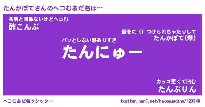 | ポケモン風あだ名 | 『タンチュウ』『タンカダネ』 |