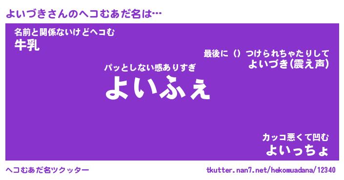 | 意味不明あだ名 | 『ペロリンよいづき』『永久保存よいづき』 |