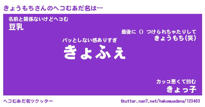 | ファンタジー風あだ名 | 『キョフェル』『エターナルキョウモチー』 |