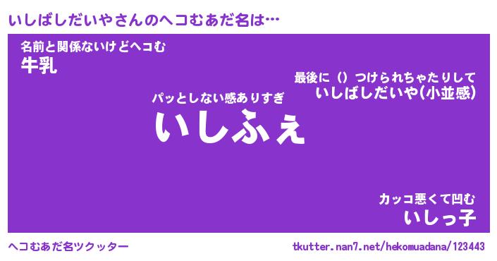 | 2回繰り返すあだ名 | 『いしいし』『いいしし』『ぬらぬら』 |