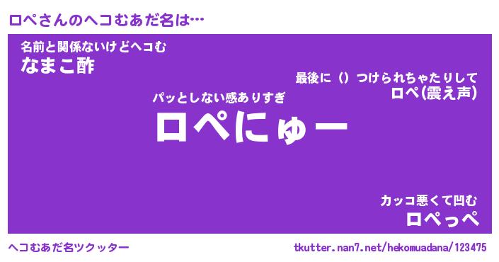 | 2回繰り返すあだ名 | 『ロペロペ』『ロロペペ』『うねうね』 |