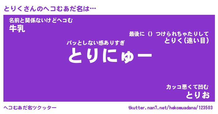 | ヒーロー風カッコイイあだ名 | 『スーパートリク』『ウルトラとりくマン』 |